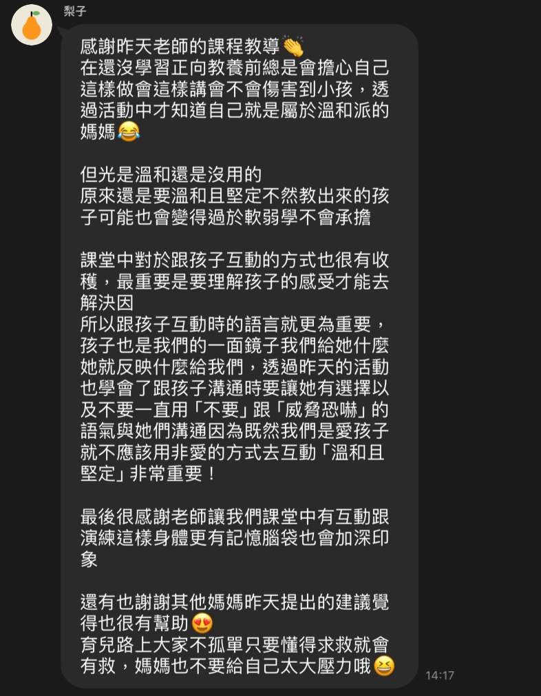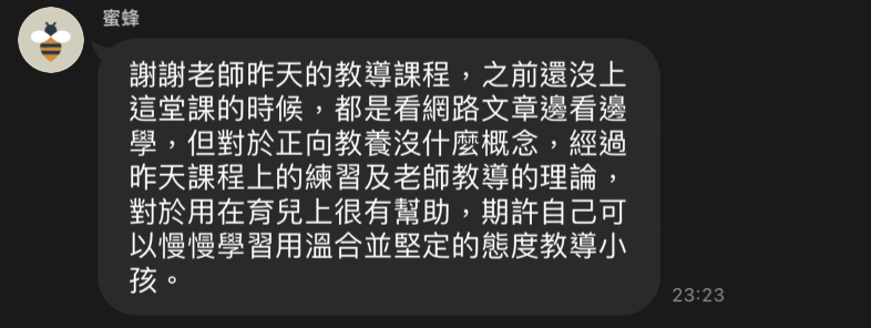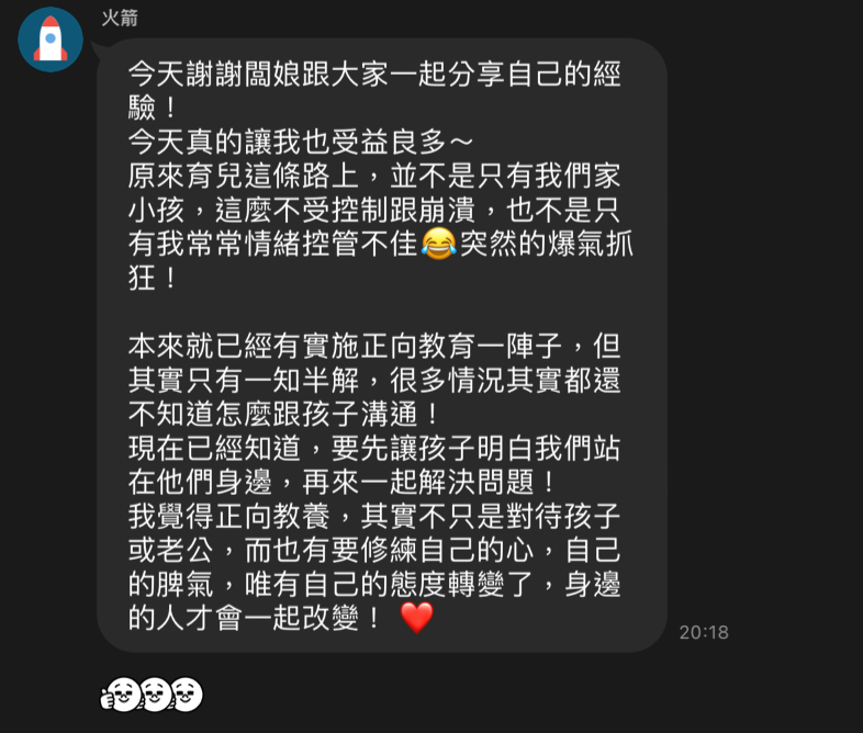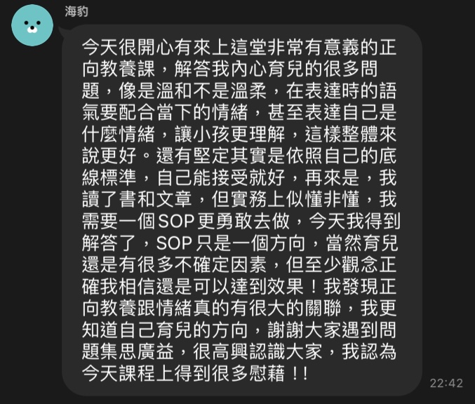 結果反應跟回饋越來越多,因此誤打誤撞的開始在響應正向教養。